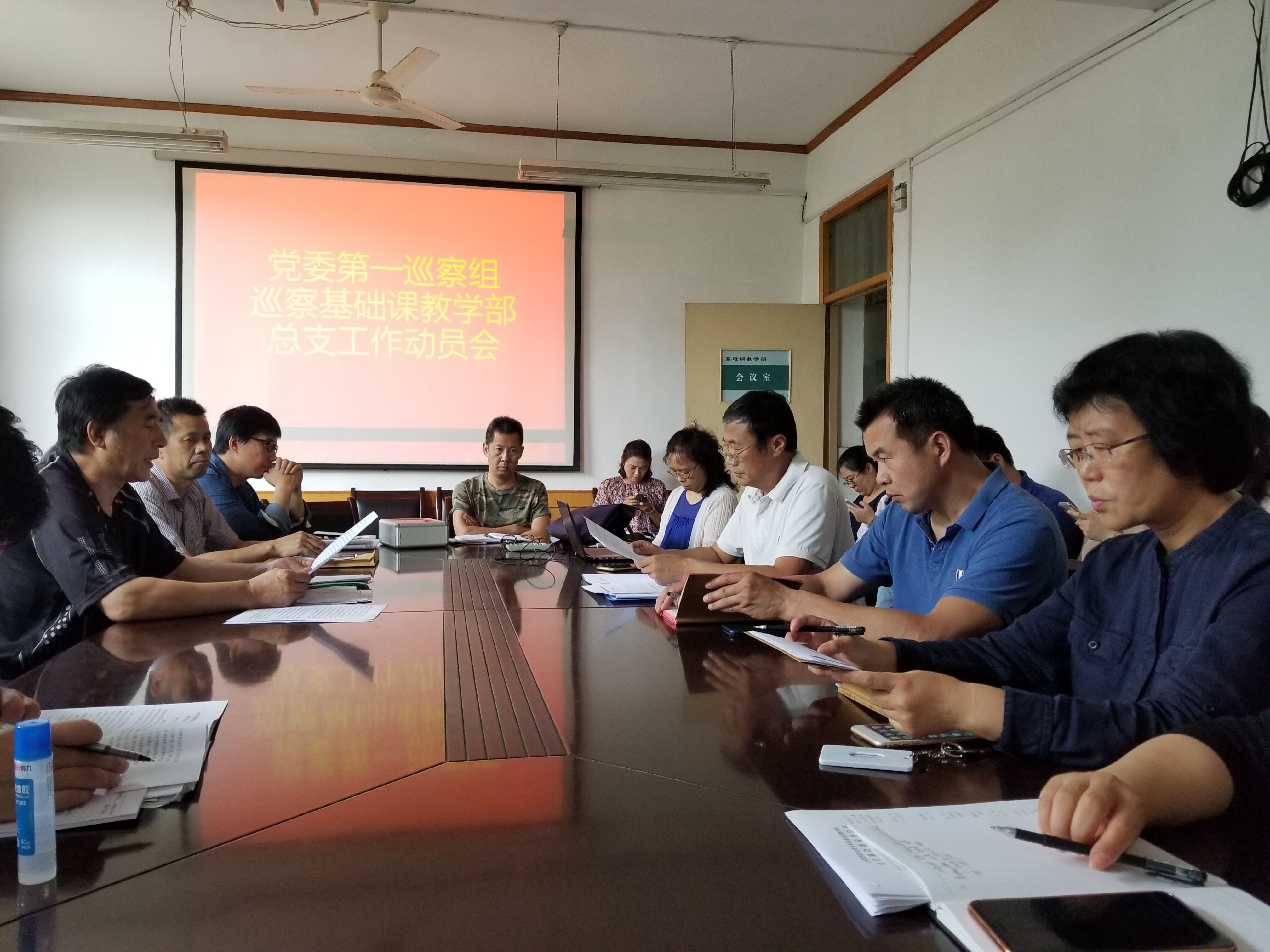 6月19日下午,党委第一巡察组召开动员会。巡察组组长白海云就即将开展的巡察工作作动员讲话,总支书记袁德明主持会议,并代表基础课教学部总支就贯彻落实巡察组要求、配合做好巡察工作作了表态发言。党委第一巡察组副组长汪玉静及巡察组全体成员,基础课教学部总支班子成员,基础部全体教职工参加会议。