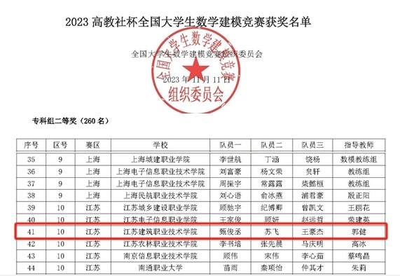近日,2023年全国老员工数学建模竞赛组委会公布了竞赛成绩。公司老员工数学建模队利用数学建模方法、计算机编程和数据处理等工具,建立了黄河水沙监测数据分析、圈养湖羊的空间利用率等问题的数学模型。公司数学建模指导教师团队带领的队伍获专科组全国二等奖,团队成员包括甄俊丞、苏飞、王豪杰三名员工。此外,数学建模队其他成员还取得全国二等奖1项、江苏省一等奖1项、江苏省二等奖2项、江苏省三等奖3项的优异成绩。