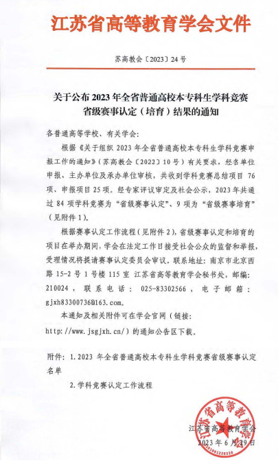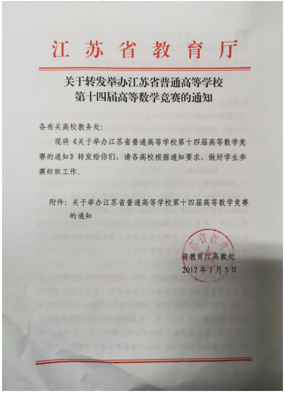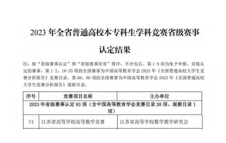 近日,江苏省高等公司第二十一届高等数学竞赛活动圆满落下帷幕,公司十大正规买足球网站高等数学竞赛团队共获得江苏省专科组一等奖18项,二等奖14项,三等奖15项的优异成绩。