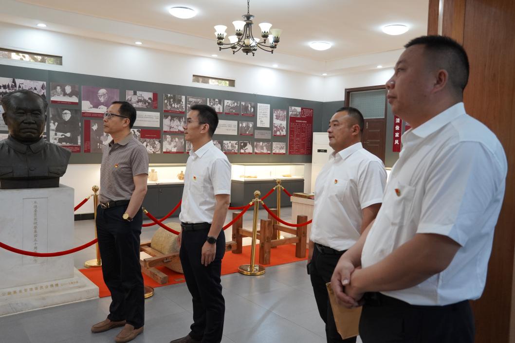 为进一步推动深入贯彻中央八项规定精神学习教育走深走实,加强党员干部作风建设,筑牢廉洁自律防线,提升干事创业激情,2025年5月25日十大正规买足球网站党总支中心组赴朱德楼开展现场学习活动,通过实地参观学习,重温革命先辈奋斗历程,深化党性教育。朱德楼作为江苏省不可移动文物,现已改造为“两厅一廊一课堂”红色教育阵地。在家风展厅,党员干部通过档案资料,学习了朱德“清俭持家、勤廉为民”的家风故事;在朱德展厅,一幅幅照片、一封封书信展现了老一辈革命家“革命到底”的坚定信仰。