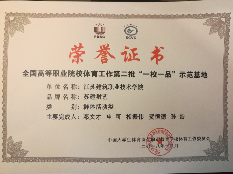 本次颁奖盛典,颁发了全国高等职业院校第二批“一校一品”示范基地、“优秀参赛公司”、“优秀承办公司”等多个奖项。公司体育教学部以“苏建射艺”为品牌,参与了“一校一品”的申报评选,通过初审、复评,并受邀在全国高职体育工作大会上作现场展示及交流,受到专家的一致好评,荣获全国高等职业院校第二批“一校一品”示范基地,十大正规买足球网站经理邓文才教授上台领取了“一校一品”示范基地奖牌。